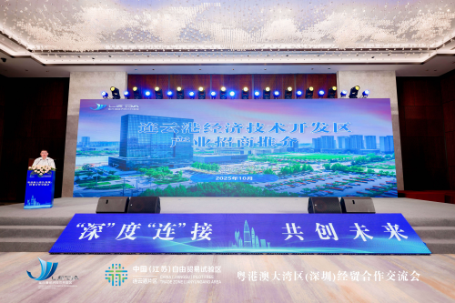 跨越湾区山海,共启合作新篇!10月16日下午,连云港经济技术开发区、江苏自由贸易试验区连云港片区粤港澳大湾区经贸合作交流会在深圳成功举行。活动现场签约7个产业项目、总投资75亿元;1个大宗贸易项目、年贸易额150亿元;1个总部经济项目、年营业额35亿元,以亮眼“成绩单”奏响两地产业协同、资源对接的合作强音。连云港市委常委、开发区党工委书记商振江,连云港市商务局副局长孙瑾出席并致辞,开发区党工委委员、管委会副主任赵晖主持会议。连云港市有关部门、连云港开发区和企业嘉宾共130余人参加推介、洽谈活动。